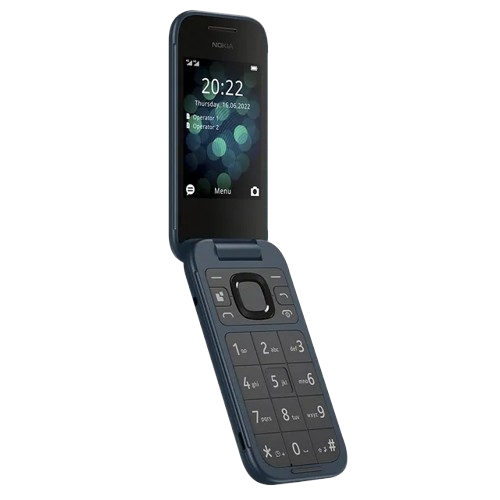 The Nokia 2660 DS is a feature phone with a 2.8-inch display, 1450 mAh battery, 32GB expandable storage, and a 0.3MP rear camera. Available in Black, Blue, and Red, it supports dual SIM and wireless FM radio. Ideal for everyday use with a simple, durable design.