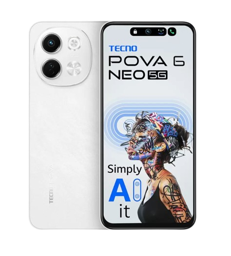 The Tecno Pova 6 Neo 5G features a 6.78-inch FHD+ display with a 120Hz refresh rate, powered by the MediaTek Dimensity 810 processor. It offers 8GB RAM and 256GB storage, a 50MP dual-camera setup, and an 8MP front camera. With a 5000mAh battery and 18W fast charging, it ensures long-lasting performance. Available in the stylish Aurora Cloud, Azure Sky and Midnight Shadow color.