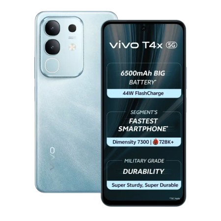 Vivo T4X 5G combines a smooth 120Hz AMOLED display, Snapdragon 6 Gen 1 performance, and a 64MP OIS camera for next-level clarity. With a 5000mAh battery and ultra-fast 80W charging, power meets style in bold Marine Blue and Pronto Purple finishes.✨