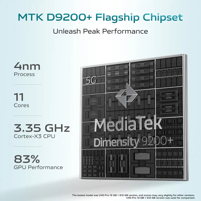 Vivo V40 Pro 5G – Experience flagship power with the Dimensity 9200+, a 120Hz AMOLED display, and ZEISS 50MP triple cameras. Slim, premium, and bold in Ganges Blue, it delivers speed, style, and endurance with 80W FlashCharge.✨
