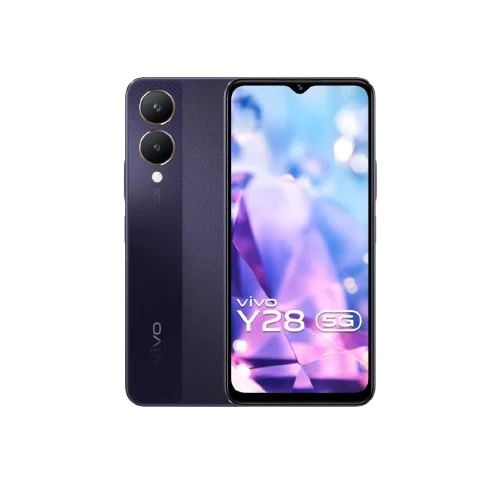 The Vivo Y28 5G (8GB/128GB) in Crystal Purple and Glitter Aqua features a 6.58-inch Full HD+ display, Dimensity 6020 chipset, 50MP dual cameras, and a 5000mAh battery with 18W fast charging. Stylish, powerful, and 5G-ready.