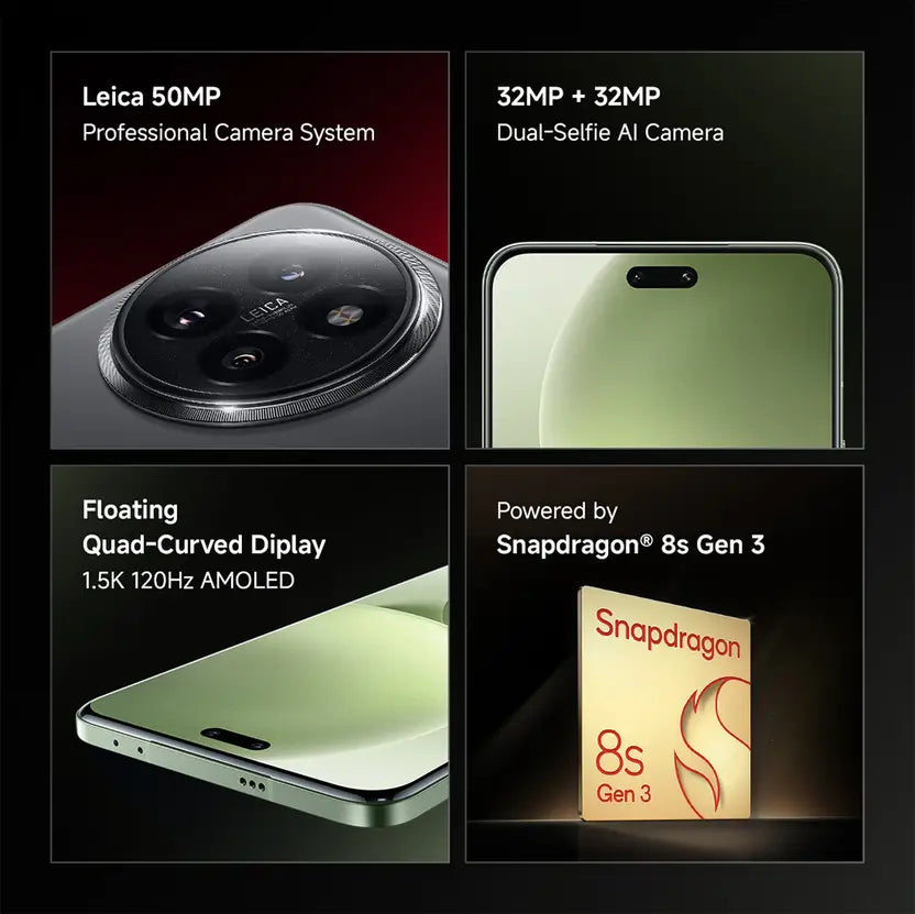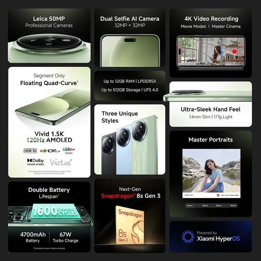 The Xiaomi 14 5G in Civi Cruise Blue — power meets elegance. Featuring a Snapdragon 8 Gen 3 chip, 50MP Leica triple camera, and 90W fast charging, it’s built for flagship performance with stunning style.